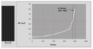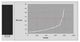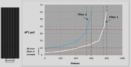 Ejemplo de comportamiento de uso de un filtro con gráficas representativas del Dif. de presión vs Tiempo.