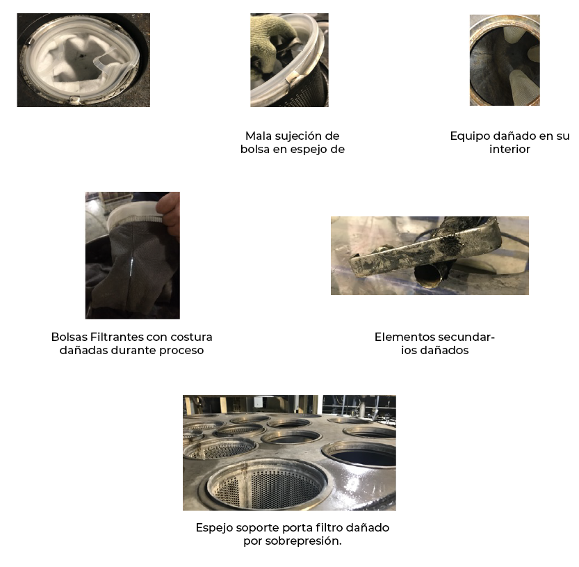 La placa base que soporta el filtro sea cartucho o bolsa, debe presentar las mejores condiciones.