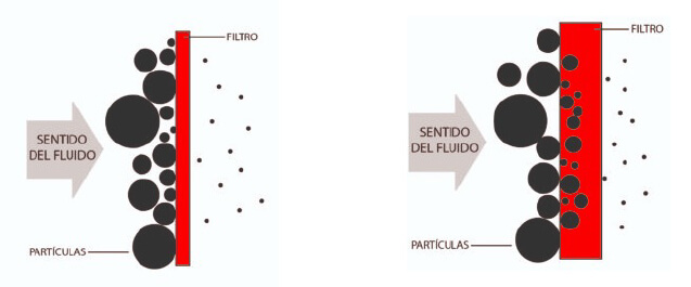 - Las partículas retenidas forman una capa de residuos, que normalmente