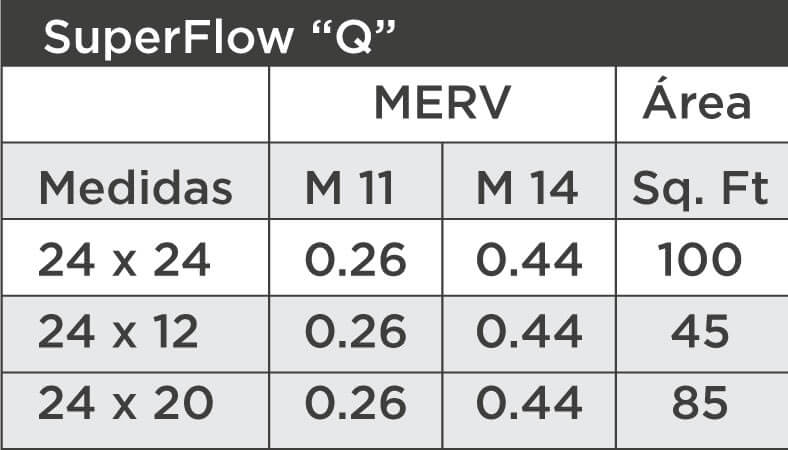 Eficiencia Superior: Disponible en MERV 11, MERV 13, MERV 14 y MERV 15.